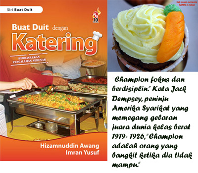 Insya-Allah, buku Buat Duit dengan Katering (sebelah kiri) nanti akan ada pendampingnya. Pelengkap perkisahan dalam usaha dan melestarikan menjadi seorang Champion.Wisata kehidupan menemukan tarikh 16 Okt. 2012 yang agak misteri. Bertemu dengan seorang pembaca yang memiliki buku