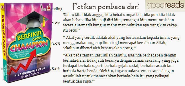 Puan pensyarah yang sedang mendengar cerita saya berkata, “Seorang champion memang macam itu. Suka bercakap dan memberi maklumat.”