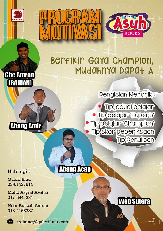 Dari jam 9.00am sehingga 8.30pm 31 Jan. 2015, saya bersama dunia buku dan ilmu di dua lokasi berbeza. Bertemu guru sekolah, ibubapa dan anak-anak, raikan pembaca dan beramah mesra. Dunia ilmu ini menjadi peneraju tamadun bangsa, dalam erti membaca membawa bahagia. Saya rela berpesta buku. Subhanallah!Sepagi sehingga tengah hari di Sek. Keb. Jalan Kebun, Klang. Bersama meraikan majlis ilmu sahabat penulis, Cikgu Wan Zayuhisham Wan Yusoff. Saya, Ustaz Adzhar Ibrahim dan Puan Suhana Salleh tidak malu-malu untuk raikan pertanyaan dan belian dari para cikgu, ibubapa dan murid-murid sekolah. Bagaikan pasar malam!