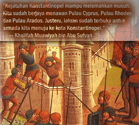 “Kejatuhan Konstantinopel mampu melemahkan musuh. Kita sudah berjaya menawan Pulau Cyprus, Pulau Rhodes dan Pulau Arados. Justeru, laluan sudah terbuka untuk armada kita menuju ke kota Konstantinopel.” – Khalifah Muawiyah bin Abu Sufyan
