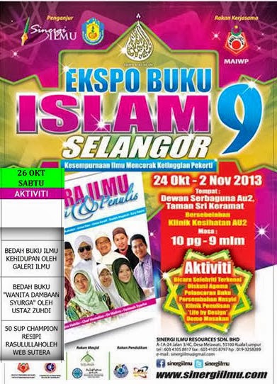 Insya-Allah, bermula esok, Khamis 24 Oktober sehingga Sabtu 2 November 2013 di Dewan Serbaguna AU2, Taman Seri Keramat, Ulu Klang, Selangor. Anjuran Sinergi Ilmu . Saya cuba hadir di hari dan masa tertentu untuk raikan rakan-rakan penulis, juga bertemu para pentaksub buku.
