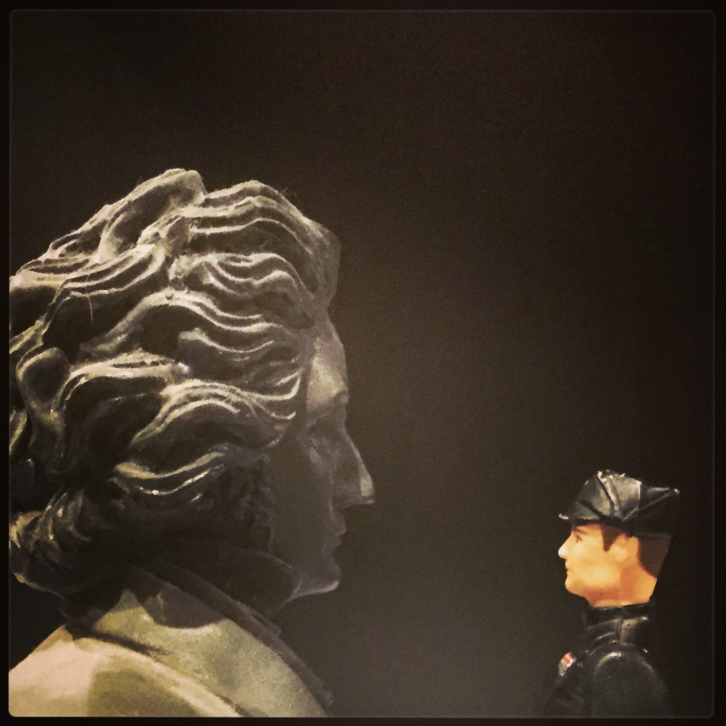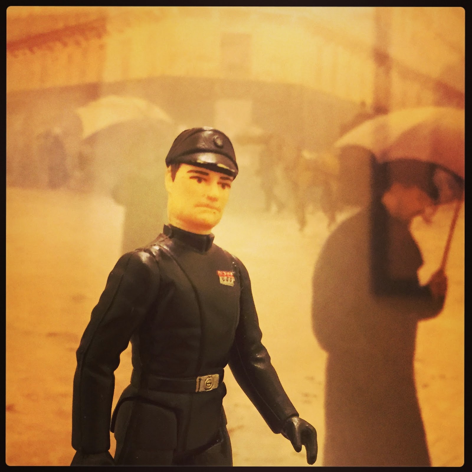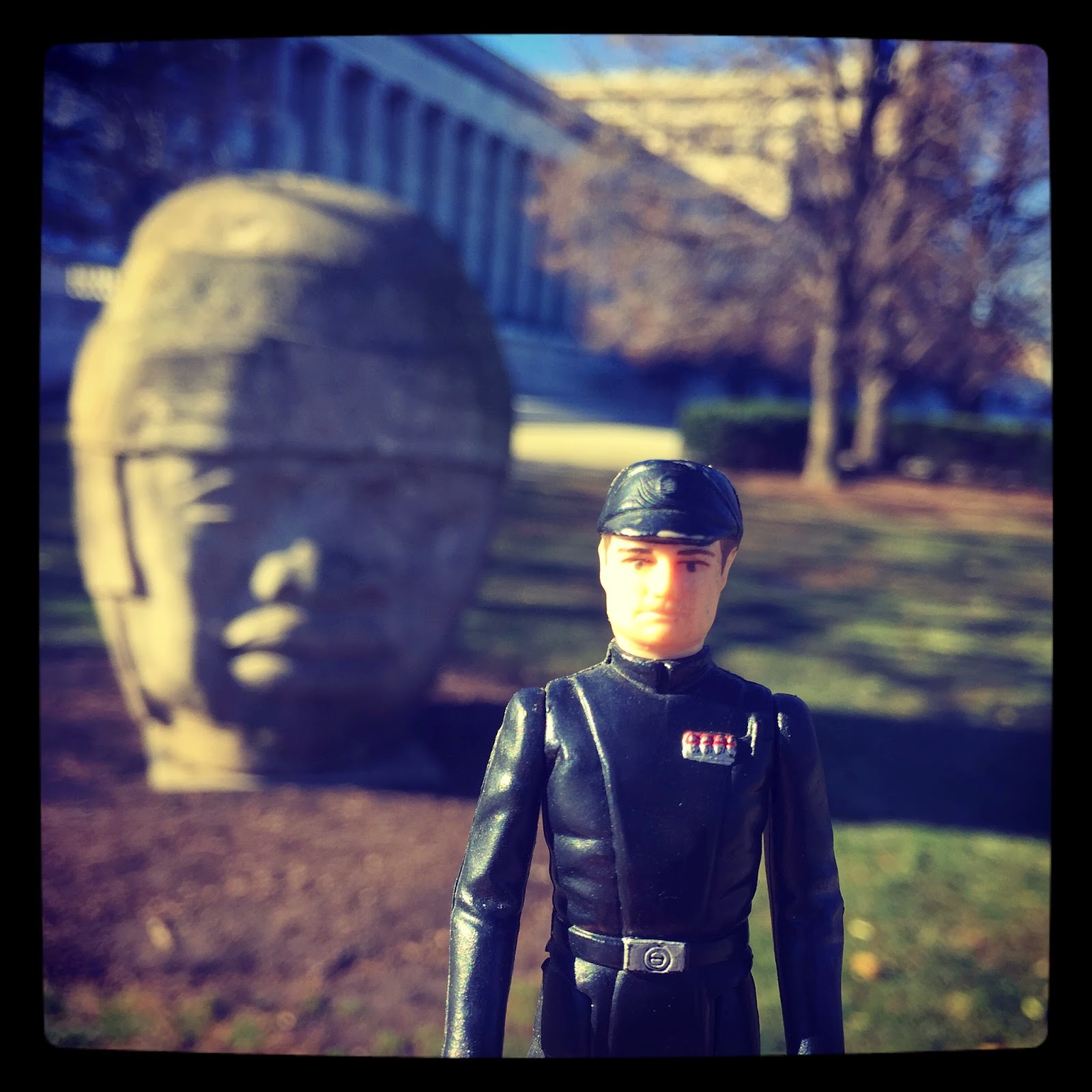 Looking back, I'm a bit amazed that we had such a good sense of the absurdity and inherent comic possibilities of mid-level management meatballs, and while taking some pics of the new Rebels figures with the old guys, I found that the hang-dog expression on the Imperial Stockbroker's face was a gold mine. Taking shots of him is WAY more fun than taking selfies. So here are some emotive portraits, taken around town in the last couple days, when I've had about three days of continuing tour work, which I've been documenting on my instagram.