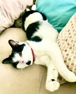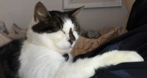 DA. This is how I keep my two lovely teenagers from disturbing me mid flow (in truth: it doesn’t work and they still barge in). Seriously, I wouldn’t be without them. I can get a bit obsessive about my writing and end up stuck at my desk for hours so it does me good to have some company and distraction!