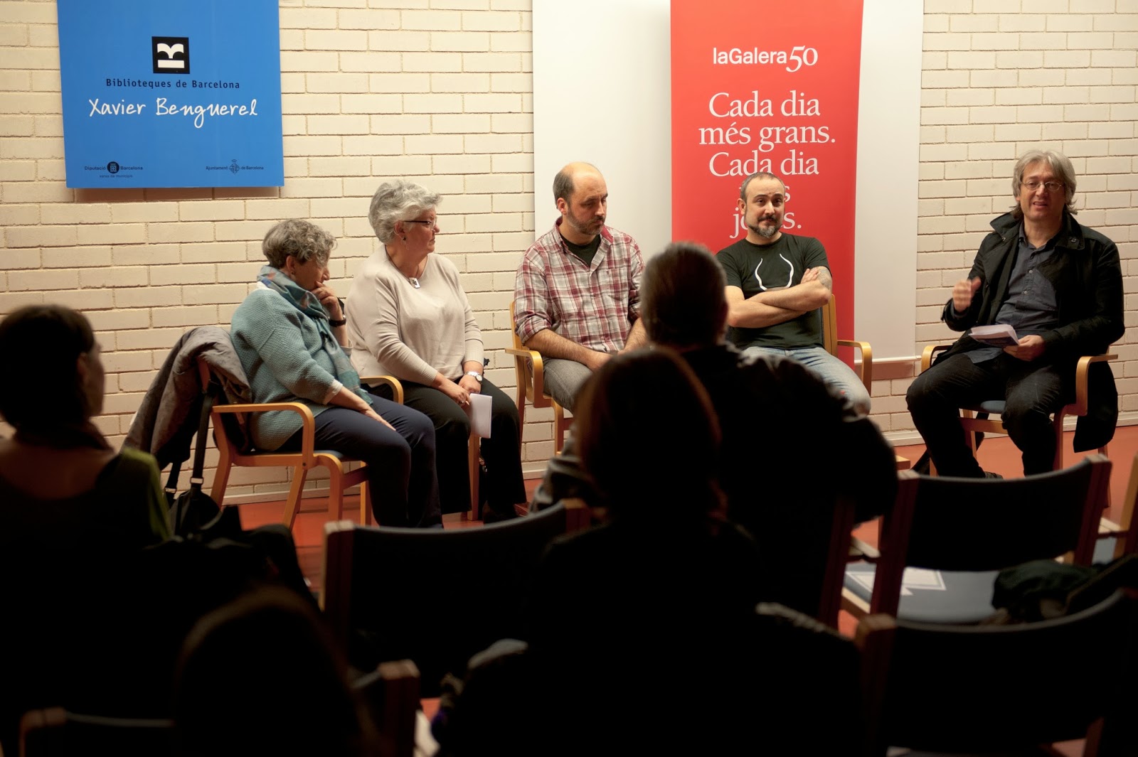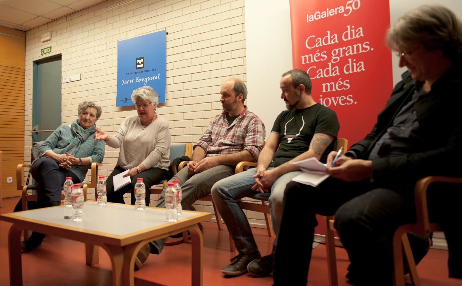 El pasado jueves 17 de Octubre tuvo lugar una mesa redonda en la biblioteca Jaume Fuster en la que además de Meritxell Ribas participaron otros autores que han colaborado durante diferentes generaciones en la editorial La Galera. Fue una charla muy amena e instructiva. Se contaron muchas anécdotas y se contó con la presencia de grandes autores como la mismísima Pilarín Bayés o Ignasi Blanch, Òscar Julve, Pedro Rodríguez y Jordi Lafebre. Hubo una gran asistencia y la charla fue moderada de manera muy amena por Joaquim Noguero.