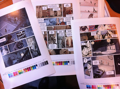 La editorial nos ha enviado esta foto de algunas pruebas de color previas a la impresión. Las "chromalins". Hay nervios hasta que sepamos como ha quedado finalmente impreso.