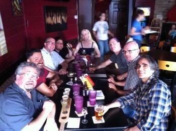 The unofficial WorldCon Pub Crawl. I got to share drinks with Holly McDowell, Jim Minz, Bill Shunn, Gra Linnea, Tom Underberg, Dustin Monk, Christopher M. Cevasco and Rajan Khanna at The Bad Apple.