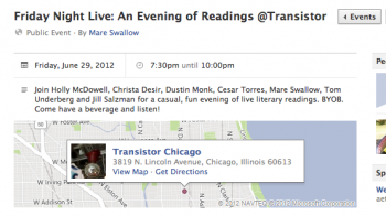 Literary Reading this Friday, June 29 at Transistor in Chicago