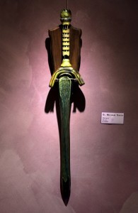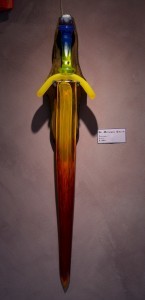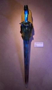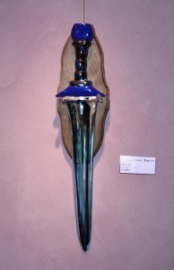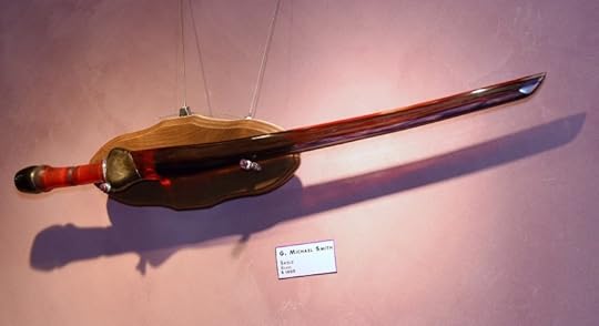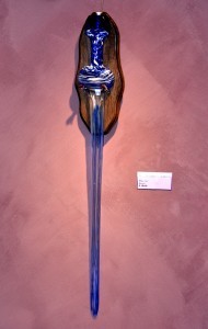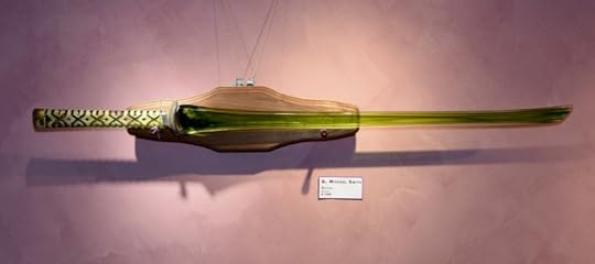 But this month we have something very cool and unusual on our walls, a really stunning display of glass swords by local Santa Fe artist G. Michael Smith.