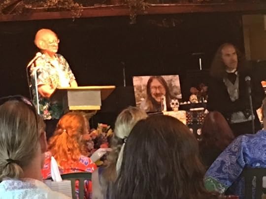 Connie Willis emceed the event, eliciting both laughter and tears from the large crowd that had gathered to say farewell, most of them in Hawaiian shirts and baseball caps.