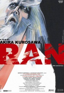 RAN (which means “chaos” or “revolt,” in Japan – among other things) is certainly one of director Akira Kurosawa’s top half dozen movies, so it’s safe to say that it’s one of the greatest films ever made. It was his fourth last, and at the time the most expensive Japanese movie ever, at a cost of $12 million dollars. Nowadays, of course, you can’t even get a lead actor for that much.
