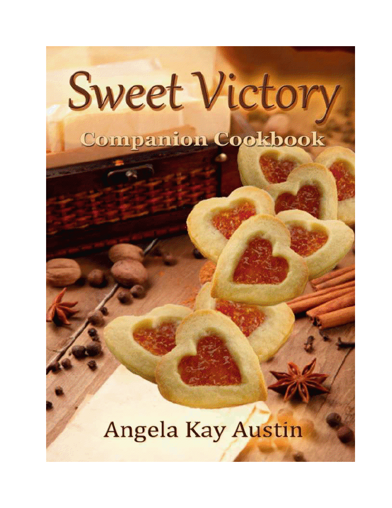 I'm excited to announce that the companion cookbook for Sweet Victory is now available from Vanilla Heart Publishing!There are all other sorts of goodies, too: bookmarks, recipe cards, ebook club discussion questions, etc. For more information visit Angela Kay Austin's Books or Vanilla Heart Publishing's EBCE!