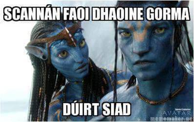 For non Irish speakers when translated it says “make a movie about black people they said” but in Irish putting a colour modifier when talking about a person/group of people it has a cultural meaning, some colours even have different words when talking about hair colour (like red). So in that vein, the word black (‘dubh’ pronounced ‘duv’) is associated with the devil and/or evil things and naturally it’s quite rude to describe someone as black in Irish so we call black people ’gorm’ (pronounced gurrum) which is actually blue. Frequently people claiming Irish heritage mess this up, most notably and hilariously is that cop who tried to make a ‘blue lives matter’ t-shirt and messed up every word single word in the translation except for the ‘blue’ modifier which made his stupid t-shirt actually say ‘black lives matter’.