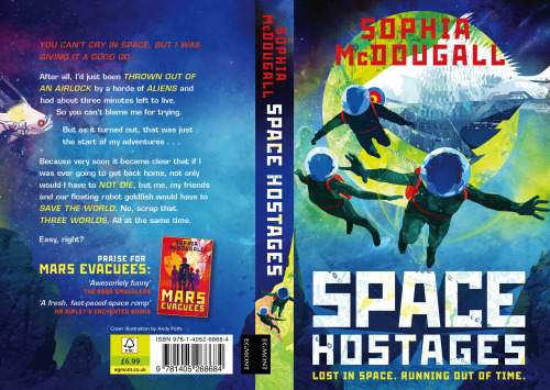 I am so in love with the SPACE HOSTAGES cover! I didn’t think anything could improve on the original cover of MARS EVACUEES but Andy Potts is a genius and proved me wrong. Check it out, and enter to win a copy.