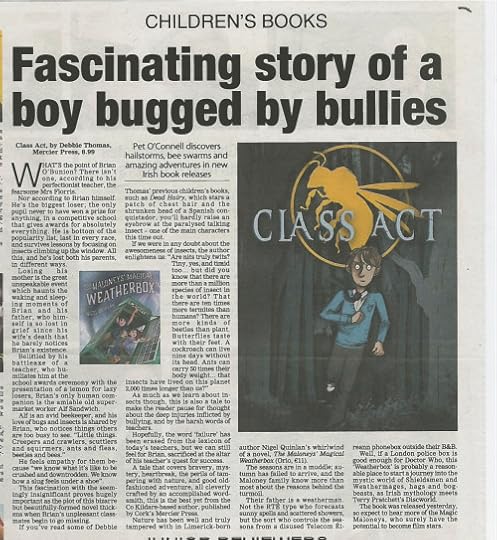 This may send you rushing off to buy a copy of Class Act by Debbie Thomas, and more power to your elbow if you do, but please spare a moment to notice the nice review of The Maloneys’ Magical Weatherbox there at the end.