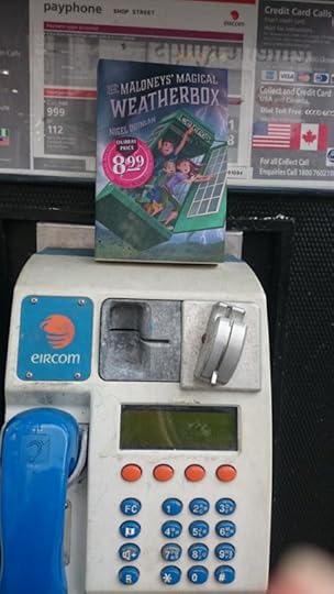 Please send more photos of the Maloneys in places and locations and environs and in structures and outside of structures and near bodies of water and possibly adjacent to foliage! Here they are in Galway, the UK, a bookshop and a phone box! CAN IT POSSIBLY GET MORE EXCITING THAN THIS???