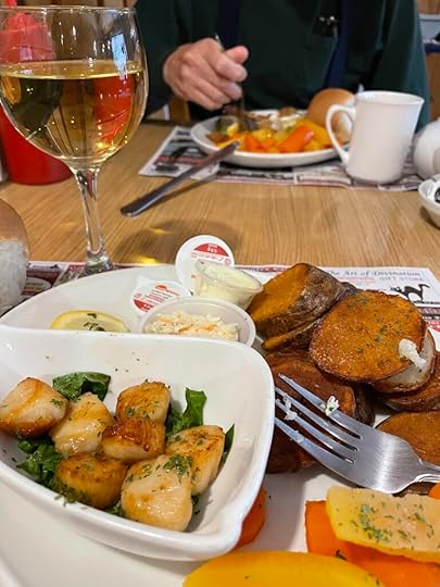 One moose greeted us briefly on the road and then trotted back to the woods.Food in Nova ScotiaLike I said, not everything was open. In the smaller towns we didn’t find a lot of good choices and we had kitchenettes so we cooked for ourselves part of the time. However, we did have some really good meals!