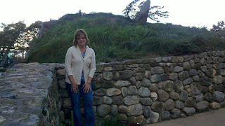 Nendrum Monastic Site. That’s me standing in the grass with my friends who live nearby, Eileen and Alister McReynolds. We are looking at the ruin of the round tower.To see more of Nendrum, visit this site.