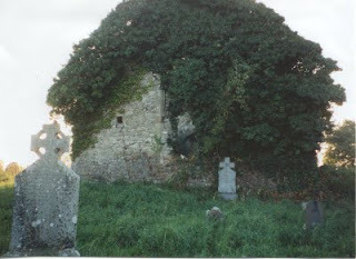 Unknown source, but you can see what the man in the video is referring to when you look at this photo, pre-restoration.Killabban (literally the church of Abban) in County Laois, is supposedly where St. Abban is buried. But he is associated with many places in Ireland, so who can know? Abban lived in the 5th century, or maybe the 6th century, or maybe he lived to be 300. All that is said about him.