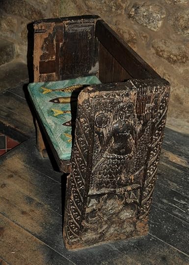 The Mermaid ChairThere is another legend, this one from Cornwell. There was a beautiful woman with a spectacular singing voice who attended church from time to time in Zinnor. No one knew where she’d come from. A young man fell in love with her and followed her one day when she left church. The two were never seen again. Years later fishermen saw a mermaid who asked them to raise their anchor because it was blocking her door and she couldn’t get to her children. Because spotting a mermaid was considered a bad omen, they complied and sailed away as quickly as they could. When they returned home and told the story, folks believed this was the missing woman who had enticed the young man to live with her in the sea. The photo below is of “the mermaid’s chair” where she sat while in church. Which came first, the legend or the chair? No one seems certain.