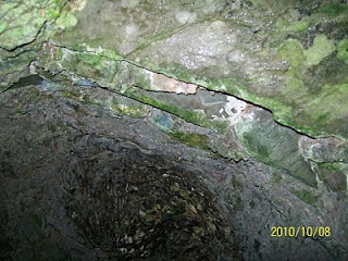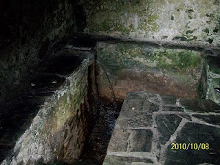 ©CindyThomsonYou can see the remains of a chapel built there in the 18th century and never finished (although I don’t have a picture of it here.) The springs were visited before the buildings were built around them. None of the buildings is thought to be older than 1600 AD. Like many of the holy sites in Ireland, this was a pagan holy site that was taken over by the early Christians. There is a men’s and women’s bath house, an eye healing well, and a drinking well. Inside the drinking well, which is roofed, you can see the wicker framework of the roof–well, at least we tried to see it. It was very dark in there! Tom took this picture. Remember, it’s an upside down view of the inside roof.
