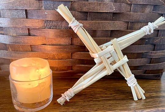 When we took a tour group to Ireland in April 2023, I had hoped to make authentic St. Brigid crosses with the group. We tried to get someone to help us but we discovered that no reeds were available that time of year. So I brought some materials with me and some of us did weave crosses in Ireland!