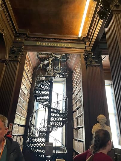 After flying all night and barely sleeping, Lisa from Prime Tours and our bus driver for the week Anthony McCann met us at the Dublin airport along with those who had flown in earlier. Then we were off for a tour around Dublin. Anthony was wonderful at pointing out all the interesting sites and giving us some history on what we were seeing. Then off to Trinity College to see the library and the Book of Kells. The library is preparing to be renovated and some books had been taken down, but I’m hearing in some Facebook groups that now there are even less books on the shelves so it seems we visited just in time to get a good look at it. I’d been before but it never fails to put me in awe.