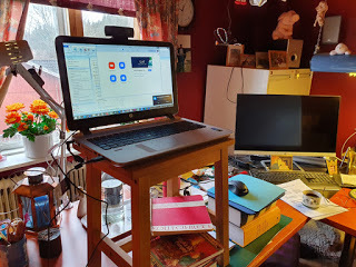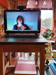 Häromdagen pratade jag med författarkollegor om digitala föreläsningar och vi hade lite olika åsikter om dem. Jag älskar att få vara hemma och slippa bo på hotell, med några saknaden hotellvistelsen. Flera tyckte att det var svårt att nå fram till eleverna, medan jag känner att det inte har varit några problem. Det gäller att inte bara stå och mala. Man måste titta in i kameran hela tiden, variera sig, röra på sig och uppföra sig på samma sätt som om man hade stått framför eleverna i klassrummet.