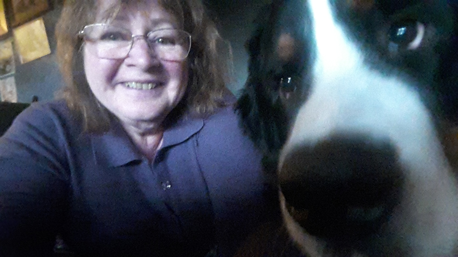 Jag och Kiara. Äntligen mår hon bättre!Nu är hon i stort sett tillbaka till det normala. Det är bara i ögonen jag ser att något är fel, dessutom har hon fortfarande ont i nacken och jag har satt upp vattenskål och matskål på en pall så hon slipper böja sig.