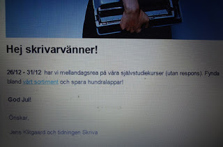 Nu är det mellandagsrea på skrivarkurserna hos tidningen Skriva. Där hittar du bland annat min skrivarkurs Hitta glädje i skrivandet .