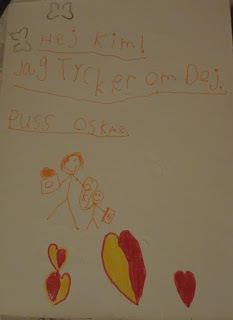 För ett tag sedan kom den här härliga skrivboken med postitlappar i olika färger och storlekar. Jag ÄLSKAR den. Skrivboken har jag fått ifrån min fan Lill-Kim/Oskar, döpt efter mig. Han är sju år och hade även skrivit ett brev till mig. Om jag inte tar alldeles fel är det jag och Lill-Kim på bilden, där vi håller i våra böcker.