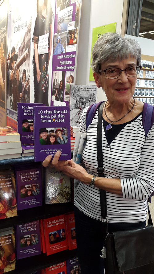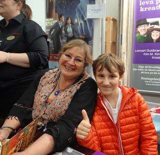 kom från Holland och missade sin signeringstid på grund av dimma och mycket försenat flyg. Då passade hon på att komma och hälsa på mig. Mycket trevligt! Rekommenderar varmt Rose-Maries böcker.
