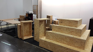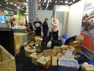 Bokmässan är över. Jessica, Elin-Sofie, Lennart och jag river montern, medan Jan, Elin-Sofies pappa och farfar, tillsammans med Jan kör iväg materialet och packar in det i släpet.