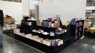 Dag fyra, söndag. Fortfarande en hel del böcker kvar, på grund av det låga besöksantalet på bokmässan dagen innan. Men jag är glad ändå. Jag vet att jag kommer att träffa många läsare den här dagen.