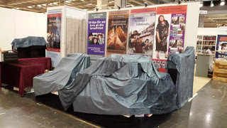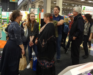 sin monter snett över gången. På lördagen var det inte så mycket folk på mässan på grund av demonstrationerna utanför. Det gjorde att jag fick tid över att kika runt bland de närmaste montrarna. Tanken slog mig att jag skulle lyssna på