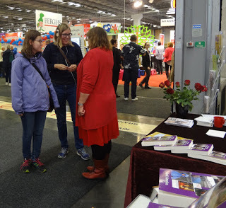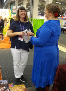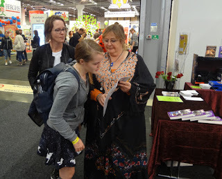 Anna-Karin träffade jag på båtturen under torsdagskvällen. Hon lovade att komma till bokmässan och höll sitt löfte. Kärt återseende och nu är vi vänner på Facebook.