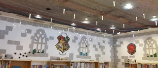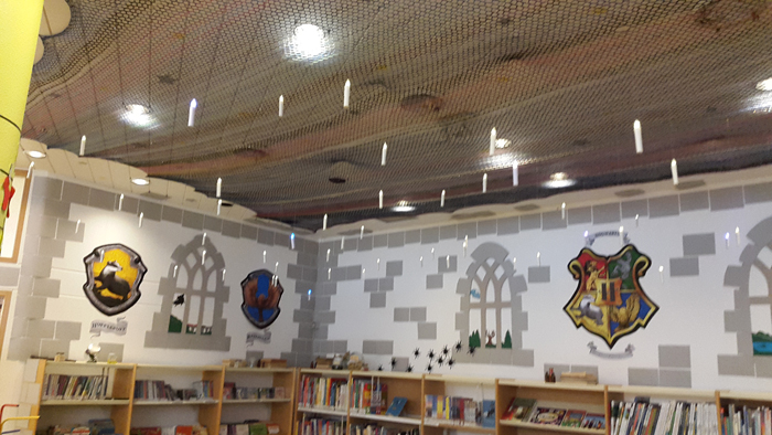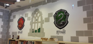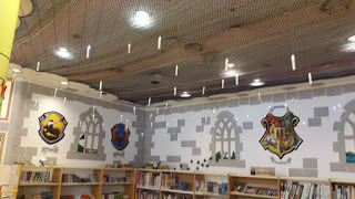 Här hade de Harry Pottertema i biblioteket. Jättefint!