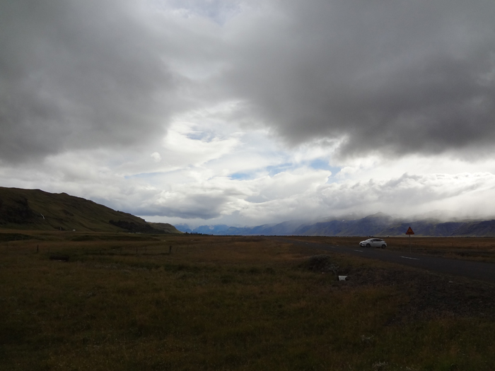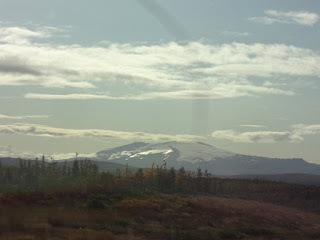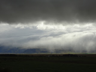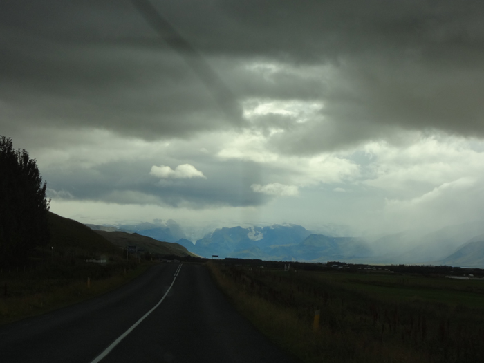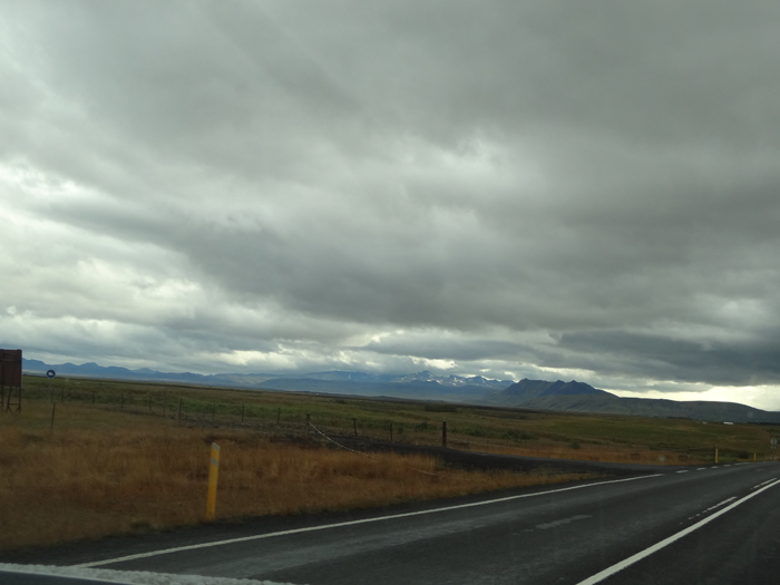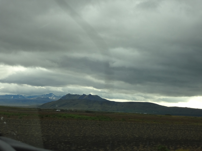 När jag anlände till Island regnade det. Min förläggare kom till flygplatsen precis när jag klev ut i terminalen. Det hade varit dimmigt när de körde till flygplatsen och de hade fått krypa fram. Vi tog resan över fjällen och slapp dimman, istället regnade det.
