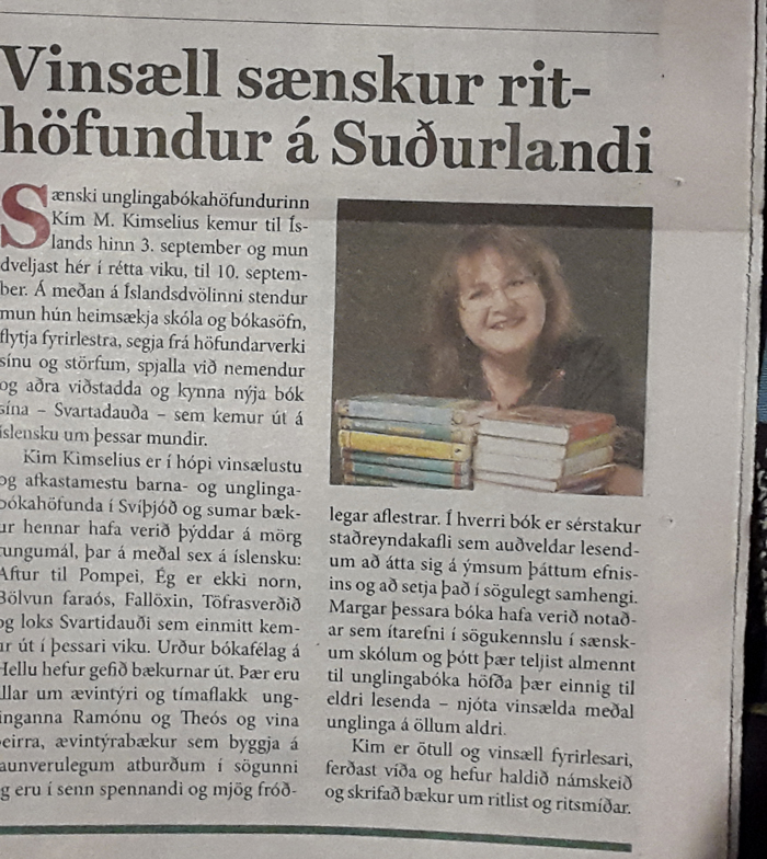 som släpptes. Den är min sjätte isländska bok. Fler är på gång. Min isländska förläggare har redan bokat in mig för nytt besök maj 2019.
