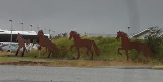 Alldeles vid min förläggares hus var det islandshästridning. Ofta stod hästarna i rad och väntade när vi körde förbi.