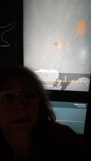. Storsamlingen med elever, besök på Lavacenter, sedan åkte vi till vulkanen Hekla. Ovan ser du när jag är på Lavacentret. I bakgrunden ser du de jordbävningar som just då sker. De är orangemarkerade. Det är ständigt jordbävningar under glaciärerna och vulkanerna på Island.