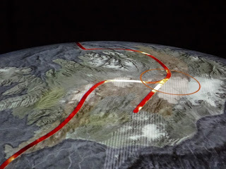 som låg i staden. Det var verkligen en upplevelse. Här ser du en del av Island och alla de jordbävningar som just då sker.