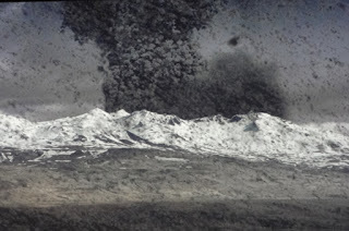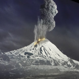 När man satt där fick den ena efter den andra vulkanen utbrott. Först kom utbrottet, sedan kom den nedfallande askan, därefter kom pimpstenen. Det rasslade i hela rummet och kändes mycket verkligt.