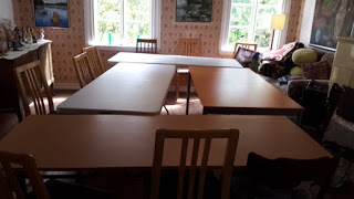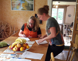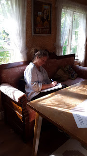 Då var det dags att stänga ned Färgargården för sommaren, plocka undan och städa lokalerna. Nästa gång jag håller skrivarkurs där är i november, vecka 44. Jag hoppas på en solig, höstvarm allhelgonahelg så vi får möjlighet att vara ute lite.