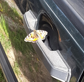 När jag skulle åka hem satt den här vackra fjärilen på handtaget till bilen. Det var bara att stå och njuta av prakten tills fjärilen flyttat på sig.