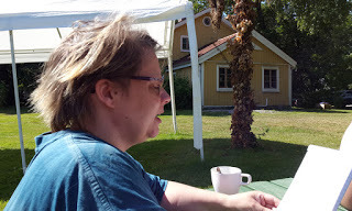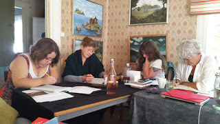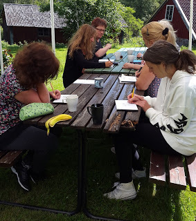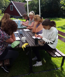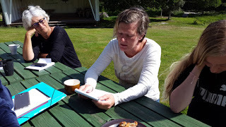 "En härlig berikande, bejakande kurs. Bra skrivövningar som gav glädje i skrivandet. Betoningen, alla är unika i sitt skrivande, och utvecklingspotentialen tycks oändlig. Kursgården från 1700-talet ramar in oss med en god atmosfär. Det blev bad i sjön, kvällspromenader och goda pratstunder. Vänskap knyts. Inspirationen flödar, likt fantasin. Många spännande berättelser växer fram. Mat, nyttig och god, gjord på kärlek." Åh, tack för de fina orden, Monica.