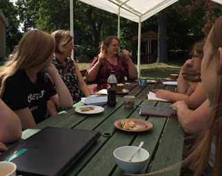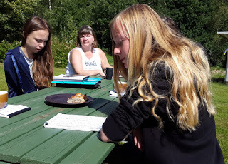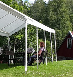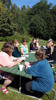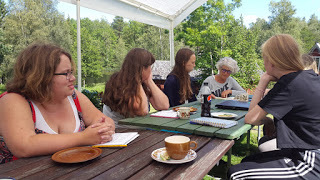 På lördagen var det så varmt att vi satt ute under kursen. I år fanns det soltak, vilket gjorde perfekt att sitta ute.