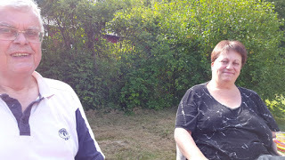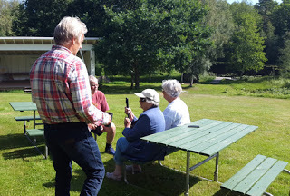 Vädrets makter var på vår sida och vi tillbringade mycket tid utomhus. Här har vi fått besök av Monicas man, Börje och hennes faster Elna. I bakgrunden skymtar även Jan, som försåg oss med mat hela helgen.