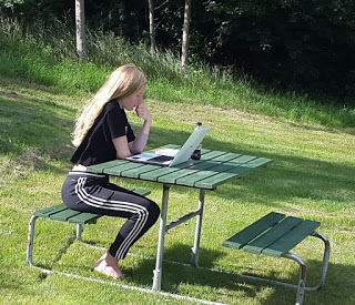 Ella Öhman tar alltid med sig datorn ut när det är fritt skrivande. Det gäller att lura ut var hon har satt sig, för hon hittar ständigt nya favoritställen. Här är Ellas omdöme om skrivarkursen:
