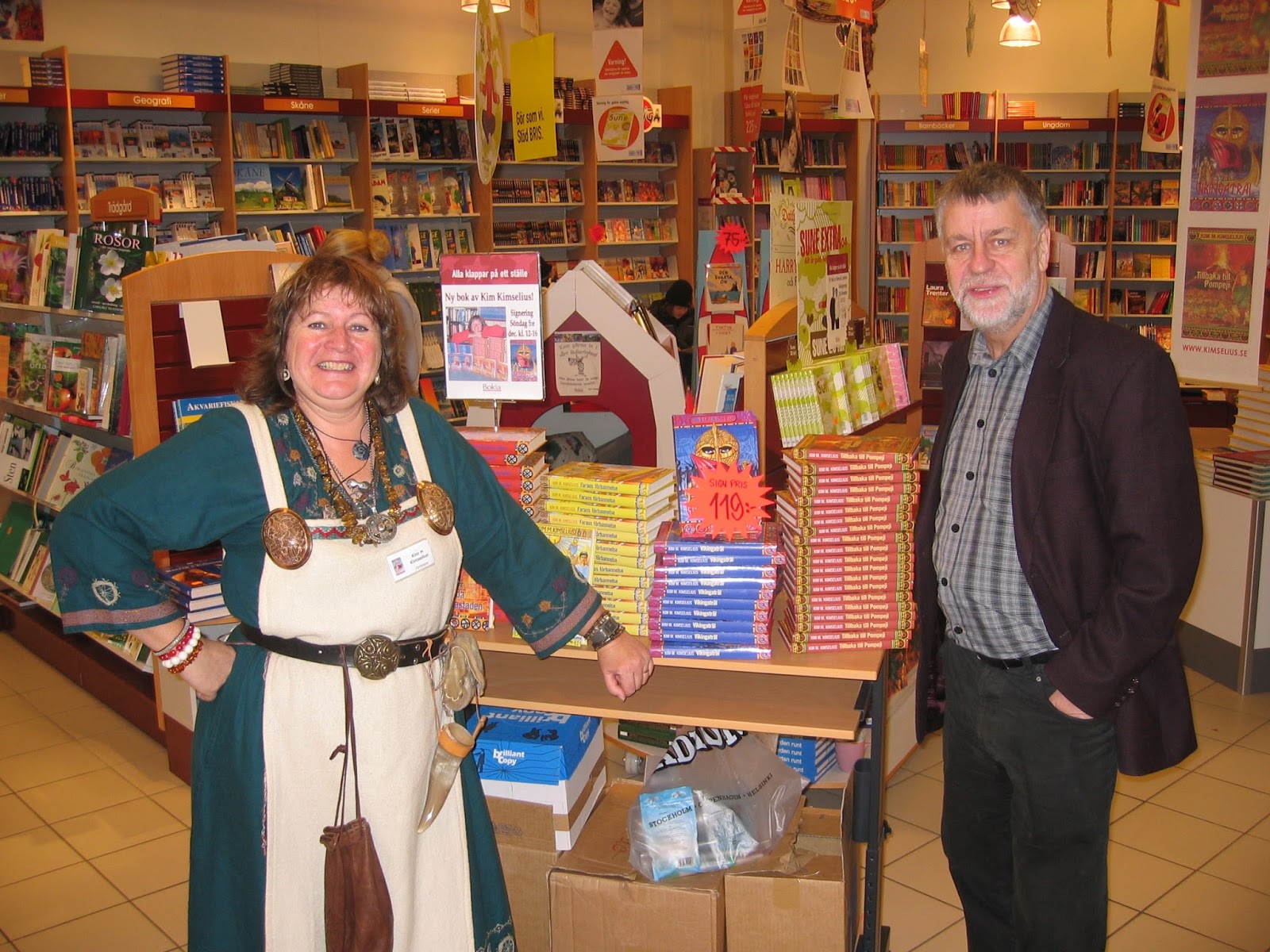 Signering av Vikingaträl, vid ett av de tillfällen Björn Hellberg och jag signerade samtidigt. Han har lärt mig många knep. Han har namnet signeringskungen. Efter ett tag fick jag smeknamnet signeringsdrottningen.