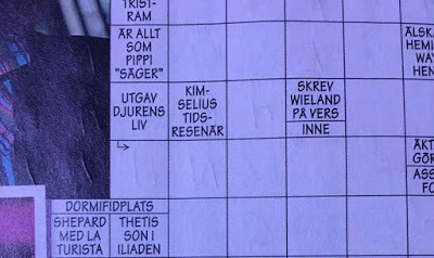 Det kom ett mejl med ett foto på att jag nämns i en korsordstidning med rubriken Litterära karaktärer. Krysset heter Stora bokkrysset och jag delar uppmärksamheten med storheter som Joyce Carol Oates, Kar de Mumma, Arne Dahl och Karen Blixen. Och alla andra författare.